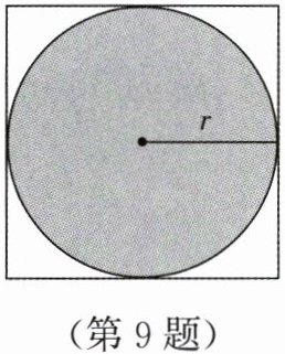 9. 如图,在正方形纸板中剪一个最大的圆,圆的半径 $ r = 2 $,正方形剪掉圆后,余下图中空白部分纸板的面积是