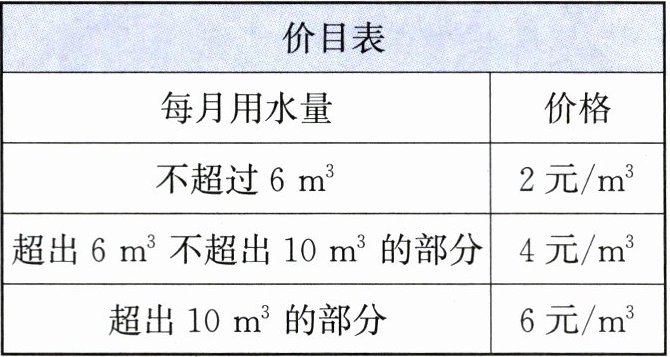 (2)(2023,部分区期中)为了加强公民的节水意识,合理利用水资源,某市采用价格调控的手段以达到节水的目的,该市自来水收费的价目表如下(消费按月份结算):