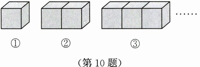 10. 用棱长为$a$的小正方体按如图所示摆放,观察图形规律并填表$(n\geqslant1)$: