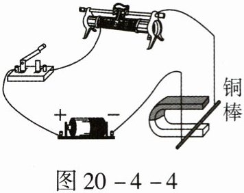 5. 如图20-4-4所示,闭合开关,铜棒向右运动,为使开关闭合后铜棒向左运动,下列操作可行的是(
