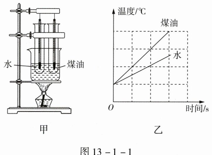 (选填“大于”“等于”或“小于”)煤油吸收的热量。(3)由图13-1-1乙可知,