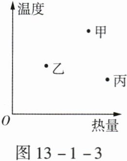 2. (多选)现有甲、乙、丙三种初温相同的液体,其中甲、乙为质量相等的不同液体,乙、丙为质量不等的同种液体。若对三种液体分别加热,则在温度—热量图像上分别作出三点,如图13-1-3所示,由此得出的结论正确的是(
