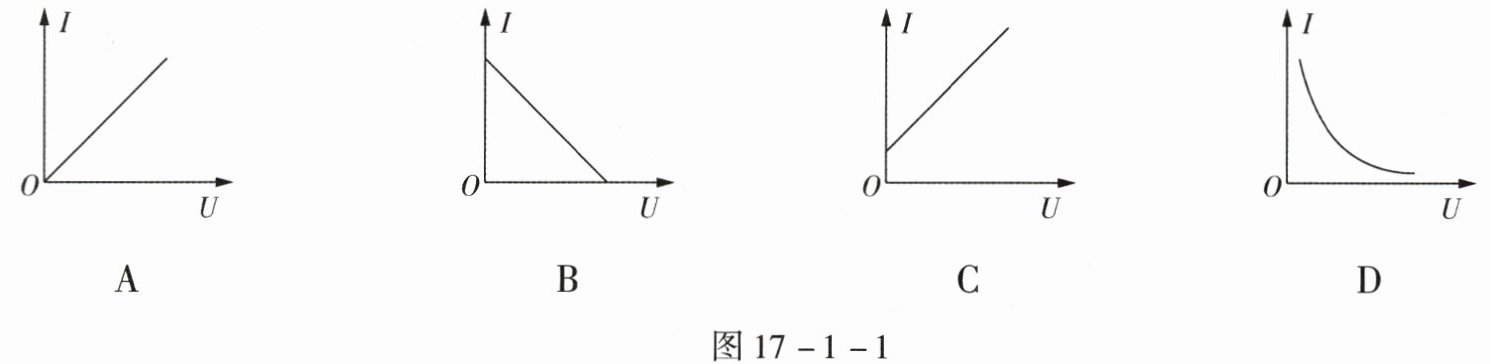 3. 如图17 - 1 - 1所示,在电阻一定的情况下,通过导体的电流与导体两端的电压关系的图像正确的是(