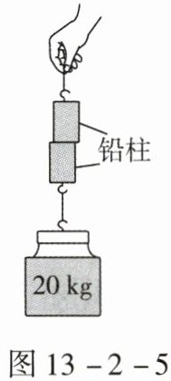 10. 如图13-2-5所示,将两个底面光滑的铅柱相互挤压,两个铅柱就会结合起来,在下面吊一个20kg的重物都不能把它们拉开。这一现象说明(