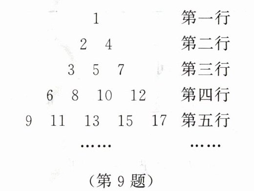 9. 将正整数按如图所示的规律排列下去。若用有序实数对(m,n)表示第m行、从左到右第n个数,如(3,2)表示实数5。