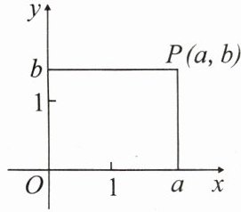 2. 如图,对于平面内任意一点$P$,过点$P分别向x$轴、$y$轴作垂线,垂足在$x$轴、$y轴上对应的数a$,$b分别称为点P$的