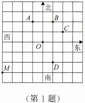 1. 如图,小明从点$O$出发,先向西走$40m$,再向南走$30m到达点M$。如果点$M的位置用(-40,-30)$表示,那么$(10,20)$表示的是(