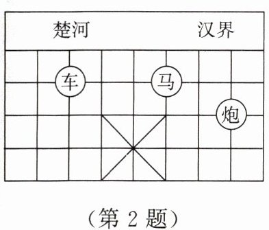 2. 如图,已知棋子“车”的坐标为$(-2,3)$,棋子“马”的坐标为$(1,3)$,则棋子“炮”的坐标为(