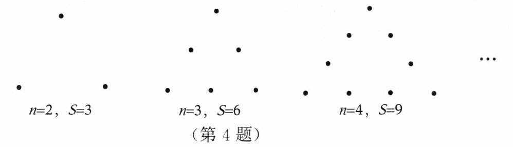 4. 下列每个图是由若干盆花组成的形如三角形的图案,每条边(包括两个顶点)有$n$盆花,每个图案的花盆总数是$S$,按此推断$S与n$之间的关系式为(