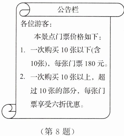 8. 一旅游团来到某旅游景点,看到售票处旁边的公告栏如图所示,请根据公告栏的内容,回答下列问题:
