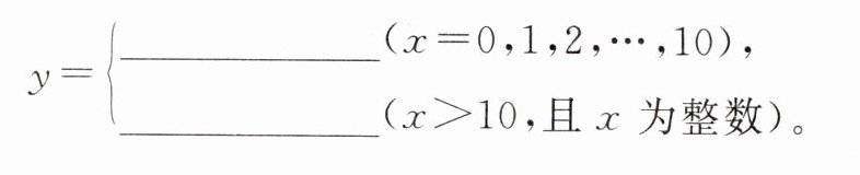 (2) 设该旅游团人数为 $ x $,写出该旅游团门票费用 $ y $(元)与人数 $ x $ 之间的关系式(直接填写在下面的横线上)。