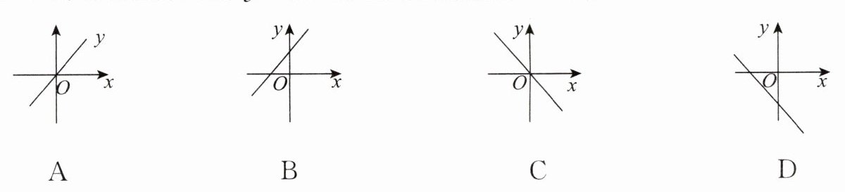 1. 当 $ k > 0 $ 时,正比例函数 $ y = kx $ 的图象大致是(