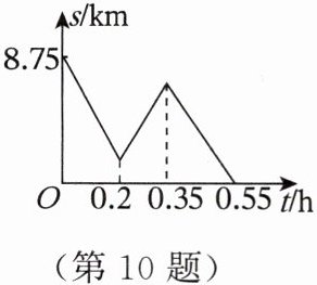10. 快递员经常驾车往返于快递公司和客户之间,在快递员完成某次投递业务时,他到客户的距离$s(km)与行驶时间t(h)$之间的关系如图所示(因其他业务,曾在途中有一次折返,且快递员始终匀速行驶),那么快递员的行驶速度是