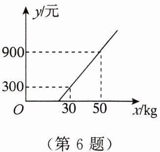 6. 某航空公司规定,旅客乘机所携带行李的质量$x(kg)与其运费y$(元)之间的关系由如图所示的一次函数图象确定,那么旅客可免费携带的行李的最大质量为(