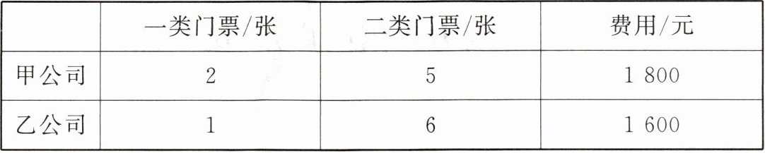 4. 某旅行社组织甲、乙两个公司的部分员工赴某景点游览,其中预订的一类门票、二类门票的数量和所花费用如表: