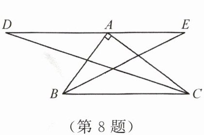 8. 如图,在$Rt\triangle ABC$中,$\angle BAC = 90^{\circ}$,过顶点$A的线段DE// BC$,$\angle ABC$,$\angle ACB的平分线分别交线段DE于点E$,$D$。若$AB = 6$,$BC = 10$,则线段$DE = $(