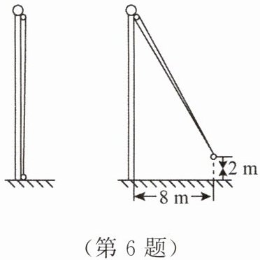 6. 如图,小亮将升旗的绳子拉到旗杆底端,绳子末端刚好接触到地面,然后将绳子末端拉到距离旗杆$8m$处,发现此时绳子末端距离地面$2m$,则旗杆的高度(滑轮上方的部分忽略不计)为