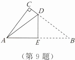 9. 如图,$\triangle ABC$是一张纸片,$\angle C = 90^{\circ}$,$AC = 6$,$BC = 8$,现将其折叠,使点$B与点A$重合,折痕为$DE$,则$DE$的长为