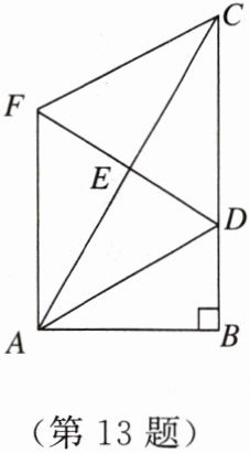 13. 如图,在$\mathrm{Rt}\triangle ABC$中,$∠B= 90^{\circ }$,点$E是AC$的中点,$AC= 2AB$,$∠BAC的平分线AD交BC于点D$,作$AF// BC$,连接$DE并延长交AF于点F$,连接$FC$. 求证:四边形$ADCF$是菱形.
