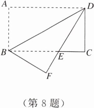 8. 如图,将矩形纸片ABCD沿对角线BD折叠,使点A落在平面上的点F处,DF交BC于点E。