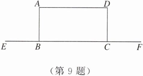 9. 如图,在矩形ABCD中,BC边所在直线上有E,F两点,且BE= CF,请用无刻度的直尺画出该图的对称轴。