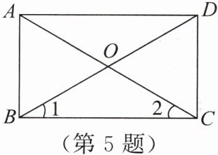 5. 如图,在$□ ABCD$中,对角线 $AC$,$BD$相交于点 $O$,$\angle 1= \angle 2$,试判断四边形 $ABCD$ 的形状,并证明你的结论.