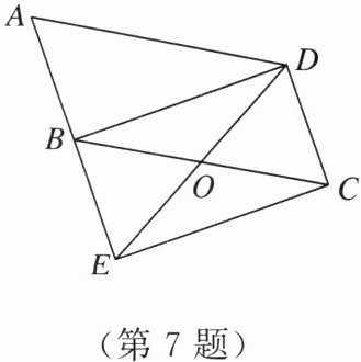 7. 如图,将$□ ABCD$的边 $AB$ 延长到点 $E$,使 $AB = BE$,连接 $BD$,$DE$,$EC$,$DE$ 交 $BC$ 于点 $O$.