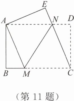 11. 如图,将一张矩形纸片 $ABCD$ 沿直线 $MN$ 折叠,使点 $C$ 落在点 $A$ 处,点 $D$ 落在点 $E$ 处,直线 $MN$ 交 $BC$ 于点 $M$,交 $AD$ 于点 $N$,连接 $NC$。