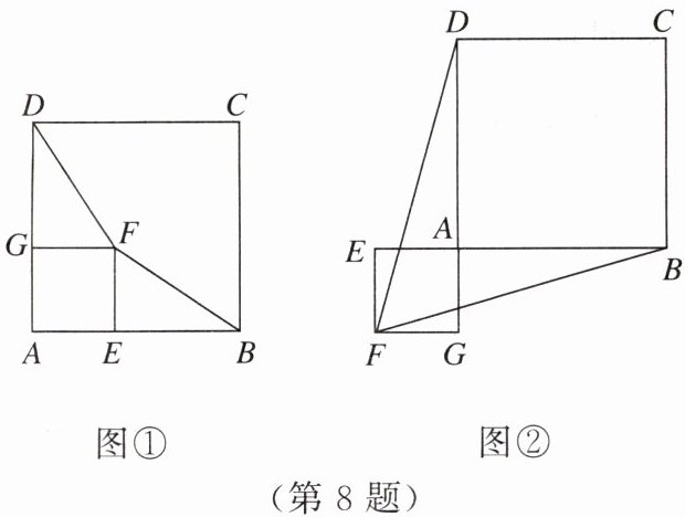 8. 正方形 $ABCD$ 和正方形 $AEFG$ 有公共顶点 $A$.