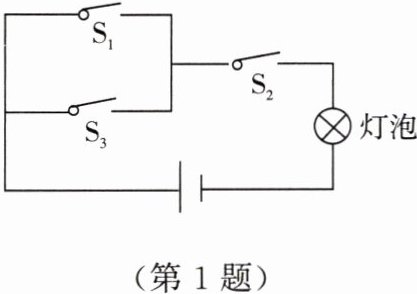 1. 如图,随机闭合开关 $ S_{1} $,$ S_{2} $,$ S_{3} $ 中的两个,则能让灯泡发光的概率是(
