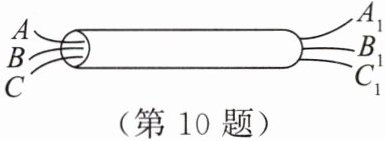 10. 如图,管中放置着三根同样的绳子 $ AA_{1} $,$ BB_{1} $,$ CC_{1} $。