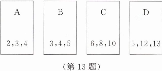 (2)抽到的两张卡片上的数都是勾股数的结果有 6 种,所以抽到的两张卡片上的数都是勾股数的概率为$\frac{6}{12}=\frac{1}{2}$.