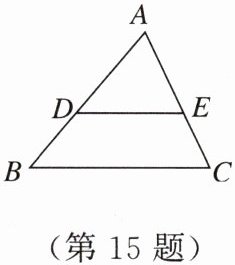 15. 如图,在 $\triangle ABC$ 中,$AB = 12$,点 $E$ 在 $AC$ 上,点 $D$ 在 $AB$ 上。若 $AE = 6$,$EC = 4$,且 $\frac{AD}{DB}= \frac{AE}{EC}$。