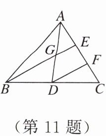 11. 如图,$AD是\triangle ABC$的中线,$AE = EF = FC$,$BE交AD于点G$,则$\frac{AG}{AD} = $