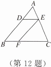 12. 如图,在$\triangle ABC$中,点$D$,$E$,$F分别是边AB$,$AC$,$BC$上的点,$DE // BC$,$EF // AB$,且$AD : DB = 3 : 5$,那么$CF : CB$等于