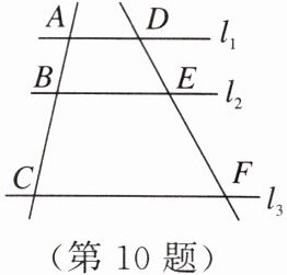 10. 如图,已知直线$l_1 // l_2 // l_3$,直线$AC和DF分别与l_1$,$l_2$,$l_3相交于点A$,$B$,$C和点D$,$E$,$F$。如果$AB = 1$,$EF = 3$,那么下列各式中,正确的是(