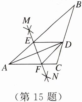 15. 如图,在$\triangle ABC$中,$AD平分\angle BAC$,按如下步骤作图: