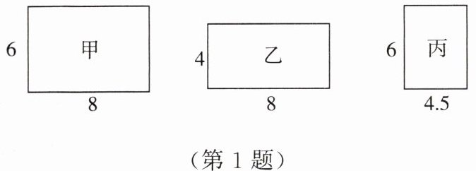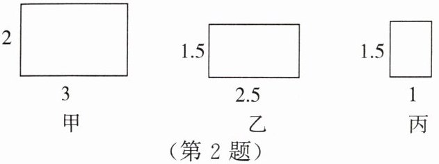 2. 如图,所标数字分别是矩形甲、乙、丙的长和宽(单位:cm),则其中是相似图形的是(