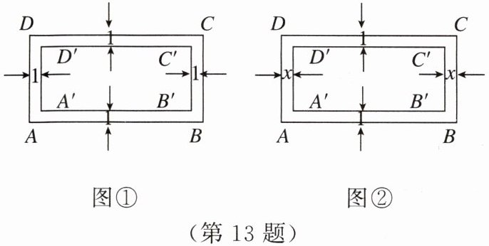 (1) 如图①,若沿矩形 $ ABCD $ 四周有宽为 $ 1 $ 的环形区域,图中所形成的矩形 $ ABCD $ 与矩形 $ A^{'}B^{'}C^{'}D^{'} $ 相似吗?请说明理由.