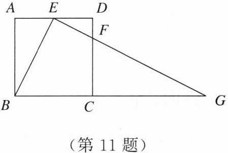11. 如图,在正方形$ABCD$中,$E$,$F分别是边AD$,$CD$上的点,$AE = ED$,$DF = \frac{1}{4}DC$,连接$EF并延长交BC的延长线于点G$.