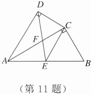 11. 如图,在四边形$ABCD$中,$AC平分\angle DAB$,$\angle ADC = \angle ACB = 90^{\circ}$,点$E是AB$的中点.