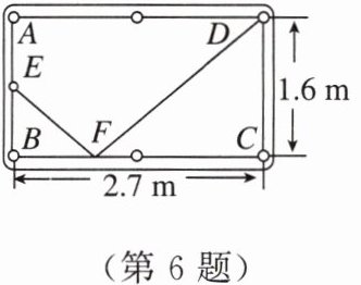 6. 如图,矩形台球桌 $ABCD$ 的尺寸为 $2.7$ m $× 1.6$ m,位于 $AB$ 中点处的台球 $E$ 沿直线向边 $BC$ 上的点 $F$ 运动,经边 $BC$ 反弹后恰好落入点 $D$ 处的袋子中,则 $BF$ 的长度为