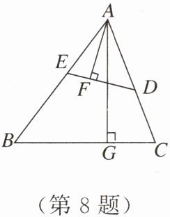 8. 如图,$D$,$E$ 分别是 $AC$,$AB$ 上的点,$\angle ADE = \angle B$,$AG\perp BC$ 于点 $G$,$AF\perp DE$于点 $F$. 若 $AD = 3$,$AB = 5$,则$\frac{AG}{AF}= $