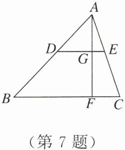 7. 如图,已知 $D$,$E$ 分别是$\triangle ABC$的边 $AB$,$AC$ 上的一点,$DE// BC$,$AF\perp BC$于点 $F$,交 $DE$ 于点 $G$,且 $AD:AB = 5:12$,则$\frac{AG}{AF}$的值为(