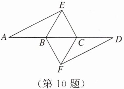 10. 如图,点$A$,$B$,$C$,$D$在同一条直线上,点$E$,$F在直线AD$的两侧,且$AE= DF$,$∠A= ∠D$,$AB= DC$.