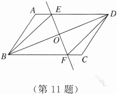 11. 如图,在$□ ABCD$中,$O为对角线BD$的中点,过点$O的直线EF分别交AD$,$BC于点E$,$F$,连接$BE$,$DF$.