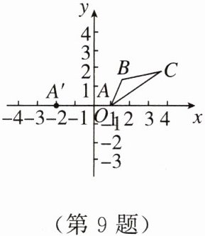 9. 如图,原点$O是\triangle ABC和\triangle A'B'C'$的位似中心,点$A(1,0)与点A'(-2,0)$是对应点,$\triangle ABC的面积是\frac{3}{2}$,则$\triangle A'B'C'$的面积是