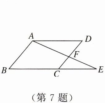 7. 如图,点$E是□ ABCD的边BC$延长线上的一点,连接$AE交CD于点F$,则图中的相似三角形有(
