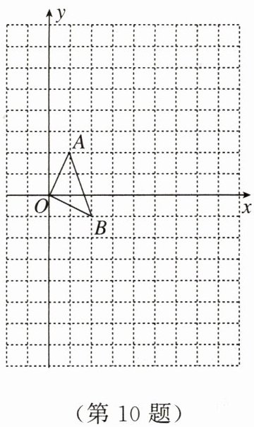 10. 如图,在正方形网格中,每一个小正方形的边长都为$1$,$\triangle OAB的顶点分别为O(0,0)$,$A(1,2)$,$B(2,-1)$。