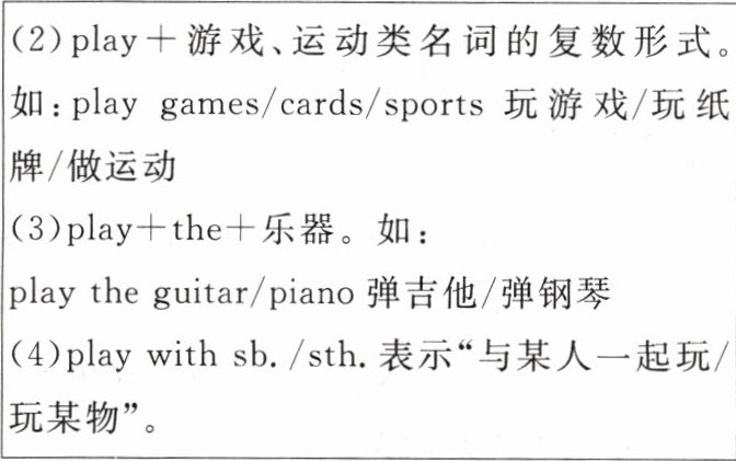 考点1 play v. 玩;踢,击(球);吹奏(乐器)
